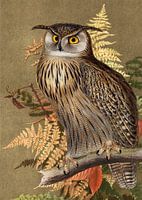 Samen vormen ze dit herfstachtige portret van een uit op een tak, bladeren en takken in herfsttinten op de achtergrond.