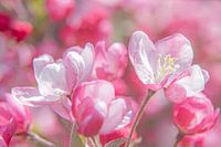 Appelbloesem, prachtige roze en witte bloemetjes van een sierappelboom. De bloemen hebben lichtgele meeldraden en stampers. In de lente zijn de kleurrijke bomen een blikvanger in je tuin. In de herfst kan je genieten van de rode sierappels.