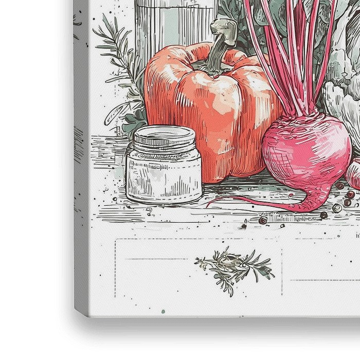 Koop de illustratie aquarel in schetsstijl, kookposter van Ariadna de Raadt-Goldberg op canvas, aluminium dibond, (ingelijste) fotoprint, behang en ArtFrame, op maat geprint in Fine-Art kwaliteit.