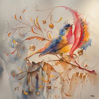Koop dit bloemen kunstwerk aquarel van een vogel van Gelissen Artworks op canvas, aluminium dibond, (ingelijste) fotoprint, behang en ArtFrame, op maat geprint in Fine-Art kwaliteit.