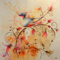 Koop dit bloemen kunstwerk aquarel van een vogel van Gelissen Artworks op canvas, aluminium dibond, (ingelijste) fotoprint, behang en ArtFrame, op maat geprint in Fine-Art kwaliteit.