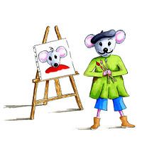 Koop dit portret artistieke muis als kunstschilder van Ivonne Wierink op canvas, aluminium dibond, (ingelijste) fotoprint, behang en ArtFrame, op maat geprint in Fine-Art kwaliteit.