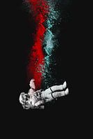 Astronaut in vrije val wordt gevolgd door een kleurenwolk
