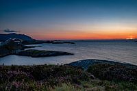 de antlanterhavnsveien ofwel atlantic road in Noorwegen is een groep eilanden verbonden door bruggen. de meest iconische brug is hoog genoeg om door zeewaardige schepen als doorgang gebruikt te worden. wanneer je hier over heen rijd ervaar je een waar spektakel, zeker bij onstuimig weer. bij een zomerse zonsondergang echter geven de koude atmosfeer de mooiste kleuren aan de lucht. top dat af met bloeiende heide in de voorgrond