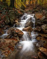 landschapsfoto van herfstscene met snelstromend riviertje in de bossen rond Spa, België