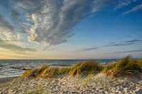 Avondsfeer met een prachtige bewolkte lucht op het strand van Ahrenshoop