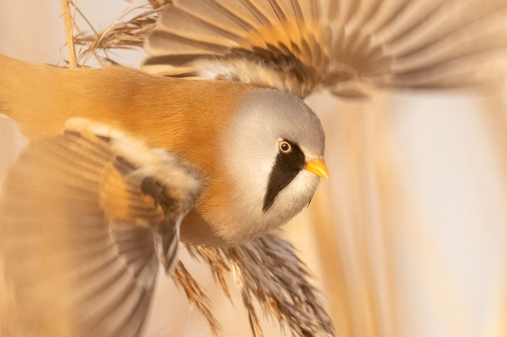 Baardmannetjes zijn prachtige rietvogels die je vaak kunt vinden in rietvelden langs het Veluwemuur of op vele andere plekken met rietvelden. Deze kon ik vliegend pakken.