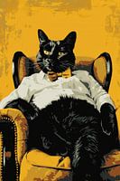 Deze prachtige print brengt een vleugje verfijning en humor in elke ruimte. De hyperrealistische weergave van een kat, gekleed in een overhemd en strikje, straalt zowel elegantie als speelsheid uit. Het contrast tussen de donkere vacht van de kat en de warme gele tinten van de fauteuil creëert een visueel aantrekkelijk geheel. Een perfect cadeau voor kattenliefhebbers en kunstliefhebbers.