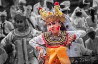 Balinese danseres tijdens groot hindoeïstisch tempelfeest