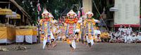 Bijzondere uitvoering tijdens 50-jarige tempelceremonie van de Baris dans, een traditionele Balinese dans. Mooi in traditionele kleding gehulde mannen dansen met in de achtergrond nog toeschouwers. Unieke ervaring geweest om deze dans in een tempelcomplex te mogen meemaken en fotograferen, dit was echt een feest voor de lokale bevolking van het tempelcomplex.