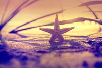 Dromerig beeld van de Baltische Zee strand, een kleine zeester in het licht van de zonsondergang.