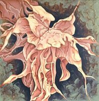 In dit fantastische beeld heb ik geprobeerd me het ontstaan van bewustzijn, denken en intelligentie voor te stellen. Het proces is als een prachtige orchideeënbloem die maar een korte levensduur heeft en net zo kwetsbaar is als een mensenleven.