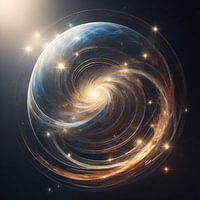Begin is een cirkelvormige figuur waar een spiraal naar toe beweegt. Je kan het zien als het begin van een nieuw leven. De cirkel staat voor de aarde. De spiraal voor de nieuwe levens. Het is een afbeelding die door de goudkleurige draadfiguren verfijnd overkomt en goed zou passen tegen een donkere wand. Een opvallen kunstwerk om een…
