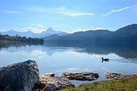 Over ‘bergmeer weissensee in het ochtendlicht voor de bavariaanse alpen in de buurt van fuessen in de allg’ van Maren Winter