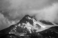 bergtop tussen de wolken in zwart-wit in zuid Noorwegen.