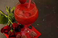bevroren aardbeien in crush met gin.heerlijke en fruitige cocktails geserveerd in glazen