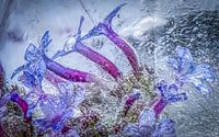 Bevroren bloemen , zichtbaar tussen de ijskristallen