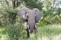 big elephant in national kruger wild park south africa near hoedspruit eating from the trees