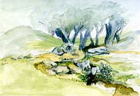 Bomen in een heerlijk zomers landschap. Het beekje kabbelt, de zomerlucht is voelbaar...