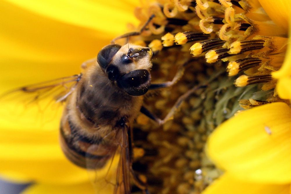 Deze bij snoept heerlijk van de nectar in de zonnebloem.