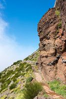blue sky and big rocks at the high mountains at madeira island called pico arieiro, the top is 1818 meters above sea level