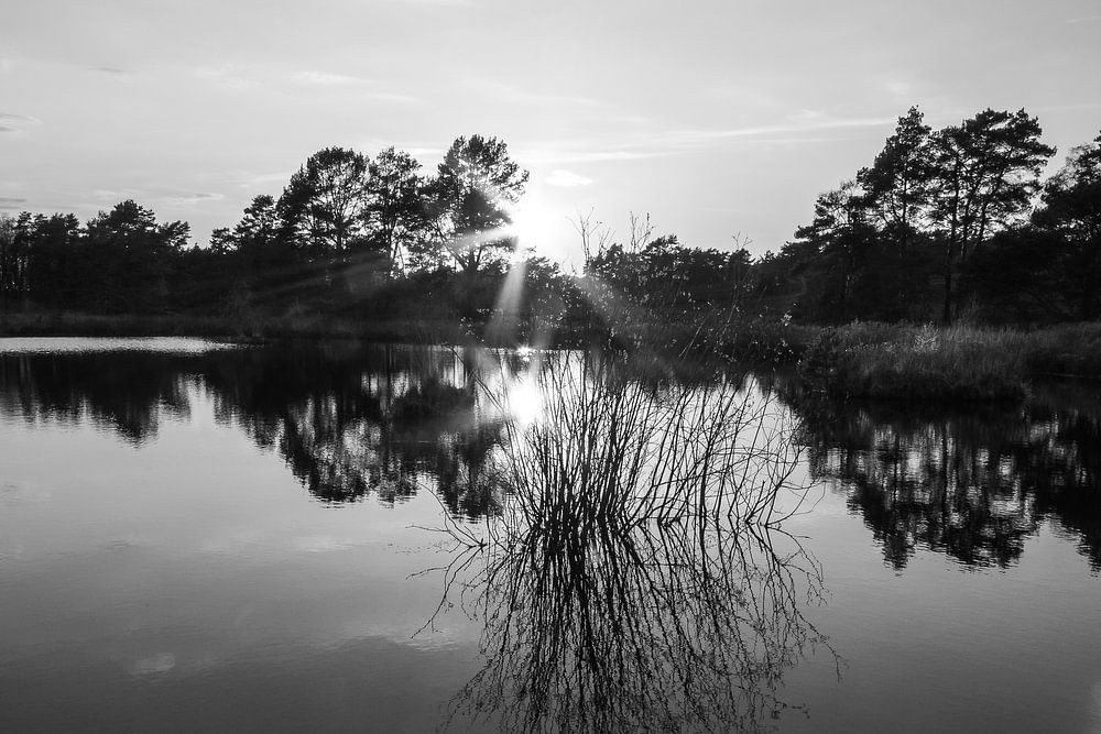 een zonsondergang in zwart wit voor wie een strak interieur heeft of deze trend graag ziet uiteraard