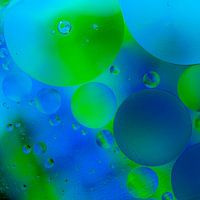 Door gebruik te maken van de breking van licht, ontstaat er een nieuw lijnenspel van cirkels van verschillende blauw en groene tinten in de olie.
