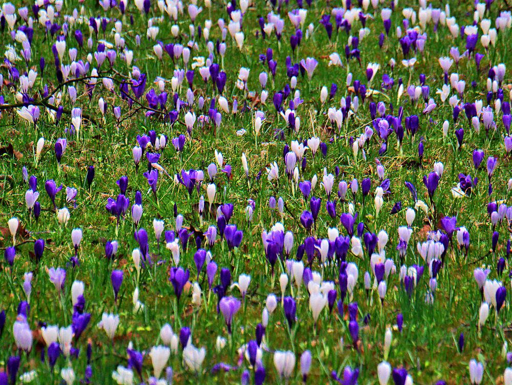 Krokusbloesem op de rotonde naar de A2 in Gelsenkirchen