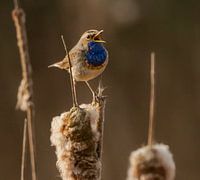 blauwborst maakt indruk om een vrouwtje voor zich te winnen.