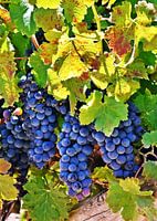 Close-up met blauwe druiven aan de wijnstok