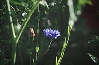 Blauwe korenbloem in een korenveld. Een vleugje kleur in de landbouw.