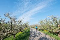 Koop dit bloemen kunstwerk bloeiende appelboom en geel koolzaad langs de appeldijk in de lente met fietser van anton havelaar als print op canvas, aluminium dibond, (ingelijste) fotoprint, behang en ArtFrame. Voor jou op maat geprint in Fine-Art kwaliteit.