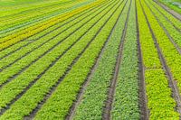 landschapsfoto van de lijnen van bloemenvelden zonder bloemen
