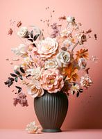 Pastelkleuren voor aan de muur. Een bloeiend boeket in een vaas in sfeervolle kleuren. Een werk die zowel in een klassiek als een modern huis ten rechte komt.