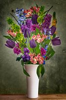 Tulpen, seringen, Alstroemeria, chrysant, lelietje van dalen en nog vele andere kleurrijke voorjaarsbloeiers.