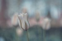 close up van een wit met groene tulp, met een zachte pastelkleurige fotobewerking