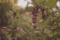 bloementuin met Leycesteria formosa en Echinacea, in het vroege zonlicht en met een beige retro fotobewerking