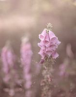 close up van een lichtroze digitalis purpurea, ofwel vingerhoedskruid, met een zachte pastelkleurige foto bewerking