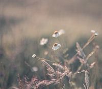 close up van een wildgroeiende Kamille in het zonlicht, met een warme foto nabewerking