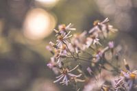 close up van een Galatella sedifolia, met een zonnige zachte bokeh achtergrond