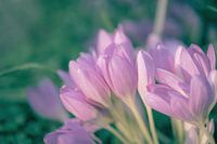 close up van roze Colchicum autumnale, ofwel herfsttijloos, met een zachte foto nabewerking