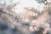 licht overbelichte foto van een witte bloesem , met een lichte pastelkleurige en wazige achtergrond