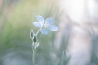 close up van het bloemetje van de Cerastium tomentosum, ofwel viltige hoornbloem, met een zachte pastelgroene achtergrond