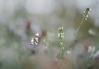 Close up van dopheide bij het arboretum van Wageningen, Gelderland. De foto heeft heel weinig scherptediepte en is bewerkt met zachte pastelkleuren.