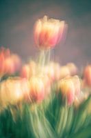 Portret van een boeket geel en roze tulpen, waar één tulp er boven uit steekt. Hier is gebruik gemaakt van ICM, ofwel intentional camera movement, wat voor een abstract en dynamisch geheel zorgt.