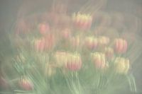 Close up van een boeket geel en roze tulpen. Hier is gebruik gemaakt van zowel meervoudige belichting als ICM. Twee ICM foto's (intentional camera movement) werden samengevoegd in de camera, wat voor een abstract en dynamisch geheel zorgt. De foto is bewerkt met weinig contrast.