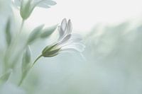 Close up van de bloesem van de Cerastium tomentosum, ofwel viltige hoornbloem. De foto is bewerkt in zachte pastelkleuren.