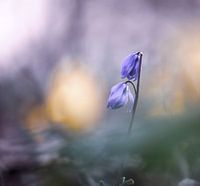 close up van een paarse scilla siberica, ofwel Oosterse sterhyacint, met een zachte en kleurrijke voorgrond en achtergrond