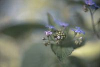 close up van ontluikende vergeet me nietjes, met een zachte groene bokeh achtergrond