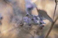 close up van vergeet me nietjes, met een zachte nabewerking, en een beige bokeh achtergrond